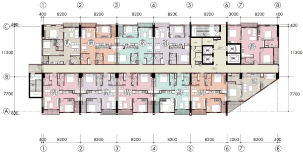 Tầng 12 – 30 gồm 209 căn hộ tiêu chuẩn (1 – 3 phòng ngủ).