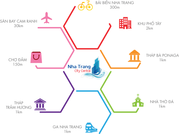 Từ căn hộ, cư dân có thể kết nối đến biển Trần Phú, chợ Đầm, bệnh viện đa khoa, trường học các cấp, khu hành chính,… Ngoài ra, dự án Nha Trang City Central còn tiếp giáp với 2 nút giao thông quan trọng là Ngã 6 Quang Trung và Ngã 6 Lý Thánh Tôn, tạo kết nối đến các điểm lân cận như Vinpearl Land, tháp Bà Ponagar, Hòn Chồng…